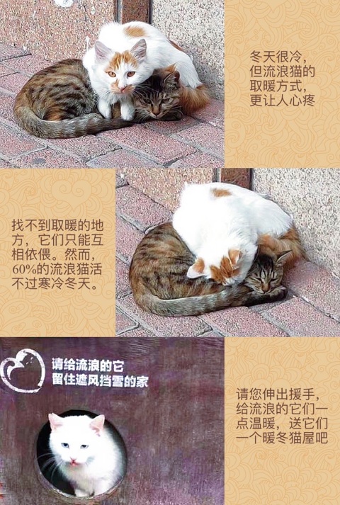 大家一起帮助制作暖冬猫屋,由汪喵面向全国群护点发放,申领人需要先填写申请表,审核通过后发放,并需要及时反馈猫屋使用情况的照片和视频