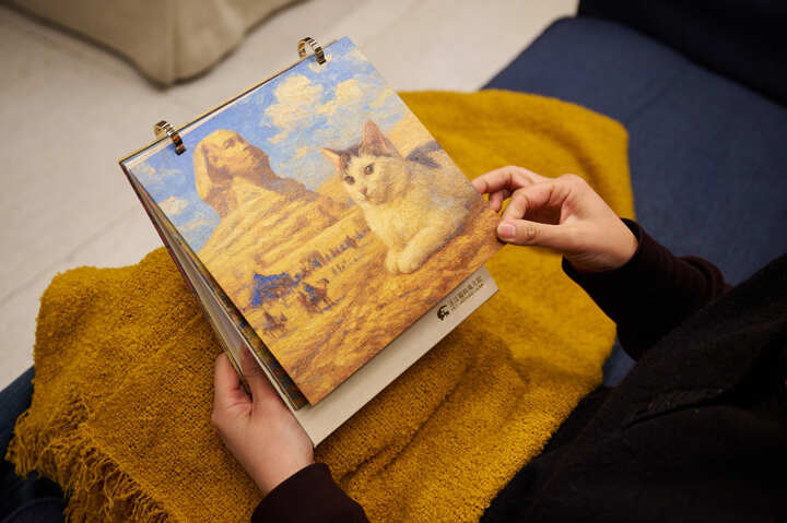 所有图案,均以我们救助过的猫狗原型为基础。我们在真实照片的基础上,用温暖的笔触,改成带它们去看世界的油画,以弥补它们未曾见过广袤天地的遗憾。