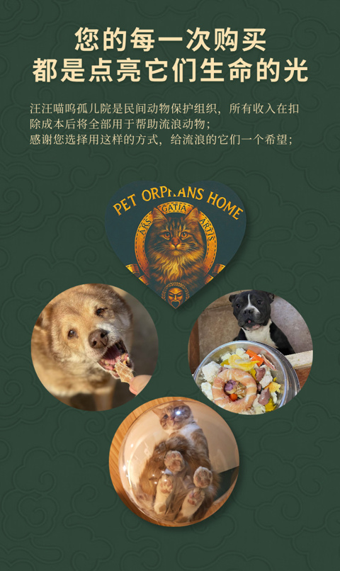 您的每一次购买,都在续写这个美好的故事。 所有义卖所得在扣除成本后,将全部用于汪汪喵呜孤儿院照顾领养中心的小动物们,让更多“TA”有机会在现实世界里,等待属于它们的家。