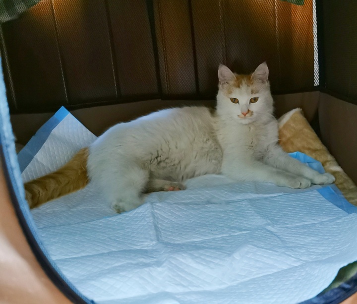 随着冬季的来临,疫情发生了,时间也到了2020年4月,米雪长成了大姑娘,生存的环境却恶劣了,小区里三五成群的流浪狗时常围追猫咪,米雪被迫离开了我给它准备的猫窝,很多天后才被发现它躲到了某楼一层窗外的护栏里,过了没多久,又逃到了其他楼二层的门廊上……,生命受到严重威胁,而且我发现它的肚子似乎大了,活动不如从前了。